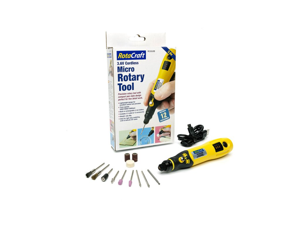 Kolekce rotačních nástrojů Rotacraft zahrnuje výběr brusných kotoučů, brousků na stopce po řezací kotouče pro efektivní odstraňování materiálu a tvarování, použít lze na dřevo, plasty, kámen a kov. Tyto vynikající nástroje jsou skvělé pro čištění, odstraňování rzi, odstraňování otřepů, tvarování a řezání. Rotacraft rovněž nabízí řadu přesných sad elektrických přístrojů - 12V, 230V, které jsou vhodné pro začátečníky i profesionální uživatele. Sady obsahují širokou řadu příslušenství. Použití pro modelování, elektroniku, kutily, řemeslné práce, opravy starožitností a restaurování, rytí, výrobu šperků a řadu dalších přesných prací.