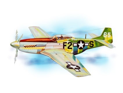Maketa amerického stíhacího letadla z II. sv. války s gumovým pohonem nebo upoutaný model pro motor 1,5ccm. Vysekávané díly. Rozpětí 768 mm. Vhodná pro konverzi na RC elektru.