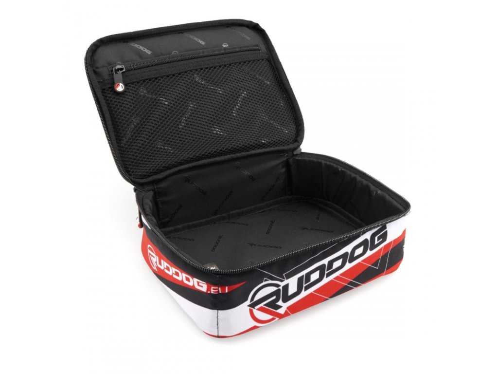 RUDDOG taška na příslušenství (střední) udržuje vaše RC vybavení organizované a chrání je na cestě na dráhu. Díky kompaktním vnějším rozměrům přibližně 25 × 19 × 8 cm se snadno vejde do vaší tašky nebo batohu a zároveň nabízí překvapivě prostornou hlavní přihrádku. Síťovaná kapsa na zip ve víku slouží k uspořádání malých dílů a kabelů a boční rukojeť usnadňuje přepravu. Výrazný design RUDDOG vypadá skvěle na každém stole v depu.