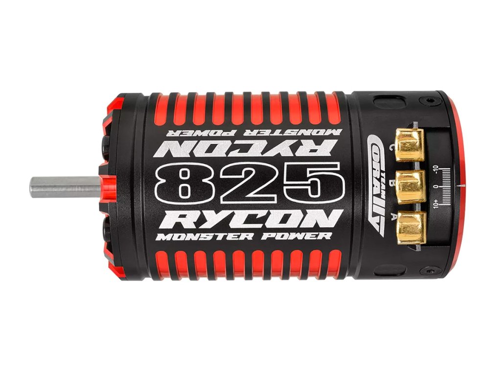 TEAM CORALLY RYCON 825 střídavý motor pro 1/8 Off-Road, SCT, GT-Rally, Monster, Truggy a 1/7 GT RC modely. Provozní napětí: 2S-6S, délka samotného těla 72,0mm, průměr: 42mm, váha: 340g, otáčky na 1Volt: 2.200 o/min, hřídel 5,00mm, Výkon: 2860W. EFRA, BRCA, IFMAR, ROAR regulérníDoplňkové parametry