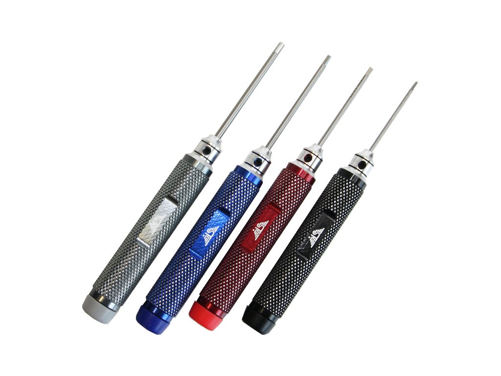 Sada imbus šroubováků z HSS oceli, rozměry 1.5 mm s dříkem 45 mm, 2.0 mm s dříkem 50 mm, 2.5 mm a 3.0 mm s dříkem 59 mm. Šroubováky jsou celofrézované pro lepší úchop. Baleno v praktické plastové krabičce.