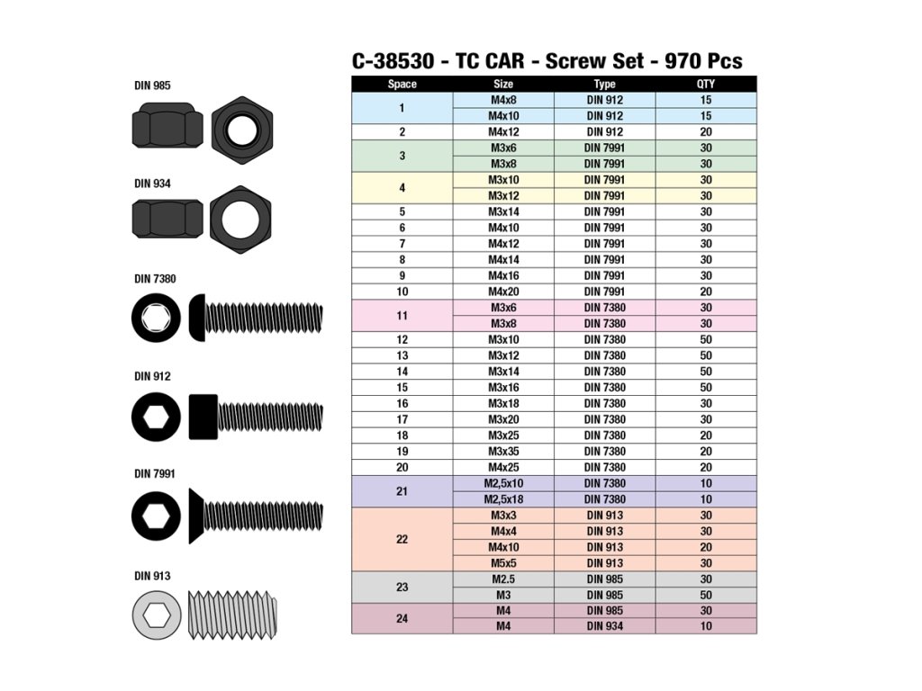 Sada matek a Imbus šroubů - sada/box - M2,5 až M5 - ocelové černé, 970 ks.