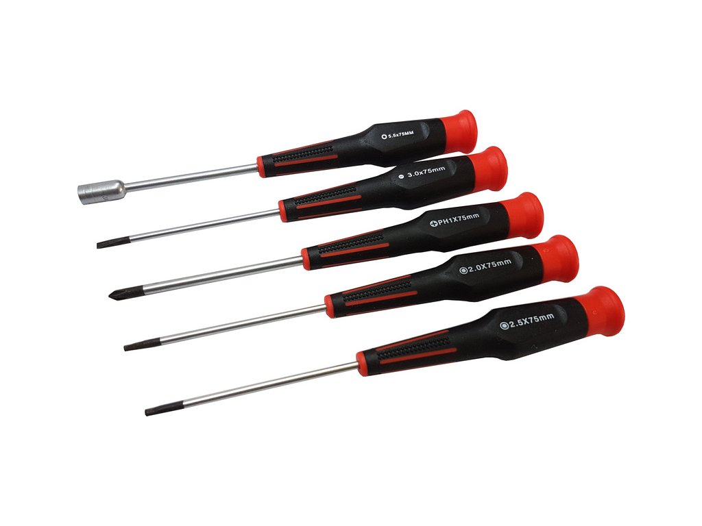 Sada nářadí Car 5-dílná se šroubováky: imbus 2mm a 2,5mm, křížový PH1, nástrčný 5,5mm a plochý 3mm.