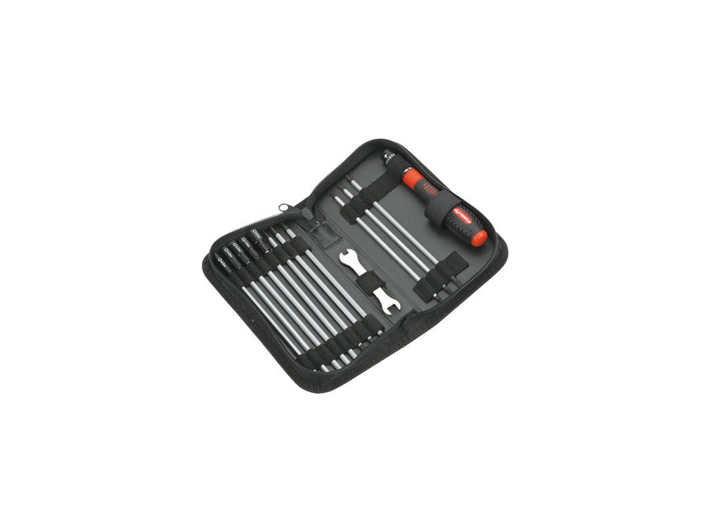 Sada šroubováků, nástrčných klíčů a klíče na spojovačky v metrických velikostech, které používá Traxxas ve svých modelech aut. Nástroje se vsunují do univerzální rukojeti s funkcí ráčny. Sada pro hobby použití sestává z celkem 17 nástavců.