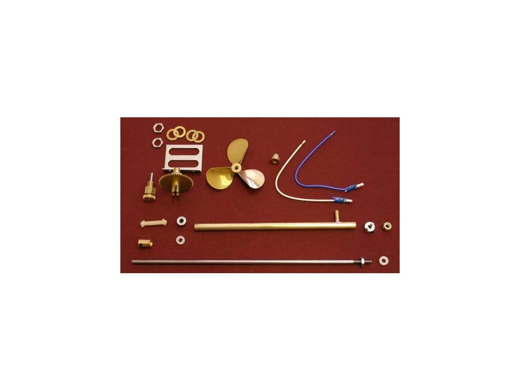 Pohonná sada pro model remorkéru Dumas 4SP1248 Jersey City. Obsahuje: Hřídel s pouzdrem, převodovku 3:1, kardan. spojku, třílilistý mosazný šroub 76mm, spojovací materiál.