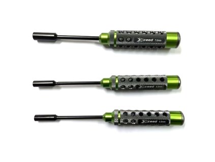 Sada obsahuje černé šroubováky s karbonovou rukojetí velikosti 1.5, 2.0, 3.0mm hex (imbus) a 5.5, 7.0mm nut (nástrčkové).
