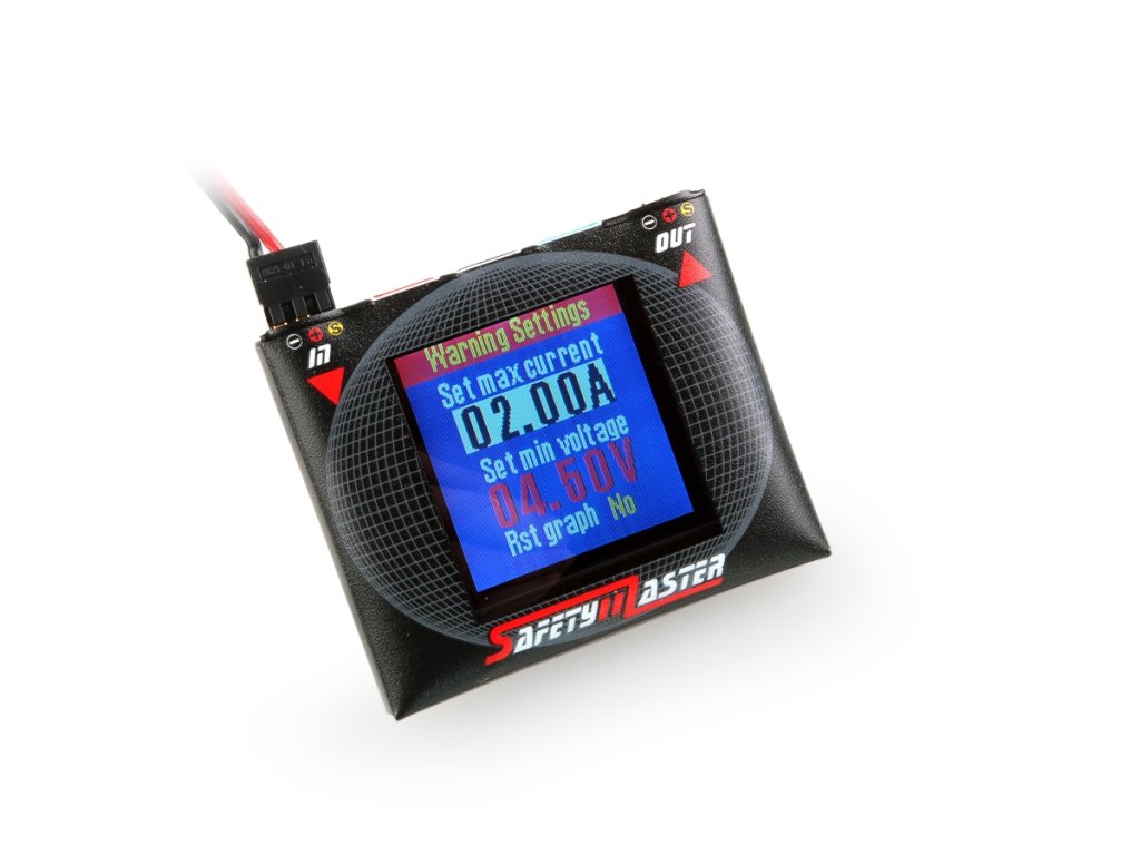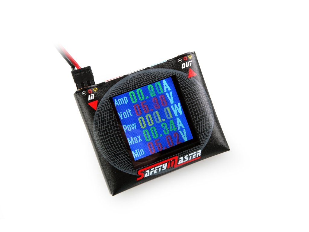 SafetyMaster je unikátní měřící přístroj - wattmetr 0,1-10,0 A s digitálním a grafickým zobrazením - který vám pomůže spolehlivě prověřit, jak kvalitní je systém napájení vašeho RC modelu. "Měkké" akumulátory a "neduživé" BEC stabilizátory jsou často tím "nejslabším článkem" palubní elektroniky a jednou z hlavních příčin havárií. Se SafetyMasterem uvidíte, jak bezpečný je váš systém napájení - díky měření proudu odebíraného servy a přijímačem a díky sledování napětí akumulátoru nebo BEC stabilizátoru při zatížení. A nejenom to, kromě odečtu okamžité hodnoty proudu SafetyMaster umožňuje zobrazovat průběh odebíraného proudu jako graf v závislosti na čase! Nízká hmotnost (sotva 14 g) a rozměry do dlaně dokonce umožňují SafetyMaster umístit na palubu a "natočit" průběh odběru v palubní síti nebo třeba jen jednoho serva za letu nebo jízdy! Do ruky tak dostáváte sofistikovaný měřící přístroj - grafický analyzér, s nímž prověříte odběr všech částí palubního RC vybavení jako nikdy předtím! V klidu domácí dílny, stejně jako v "polních podmínkách" na letišti, bez nutnosti vláčet s sebou počítač nebo jiné drahé vybavení pro zobrazení průběhu proudu.