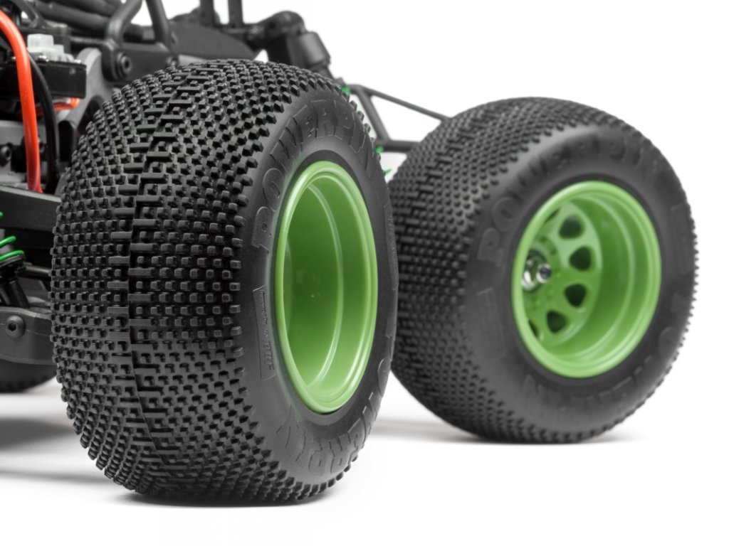 Úžasný design tohoto modelu, který pokrývá celou karoserii, pochází přímo z designového studia šampióna "Formule D" Vaughna Gittina Jr. Jasně zelené a modré barvy pomáhají viditelnosti tohoto monster trucku v bahně a nečistotách.