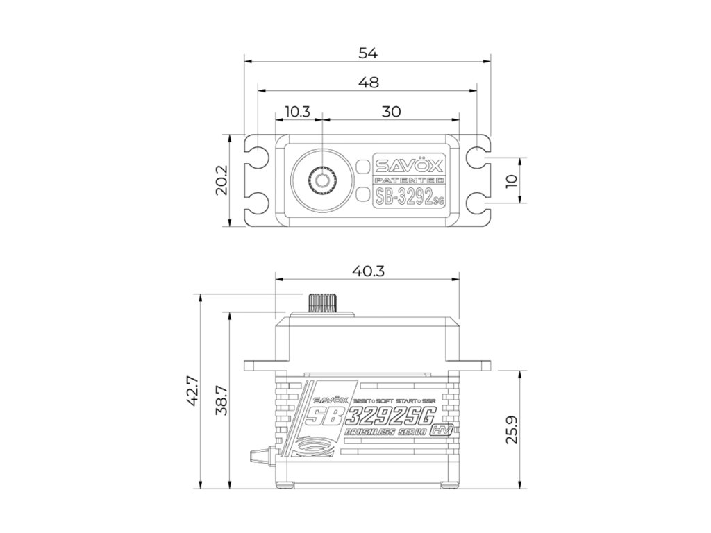 S novým servem SB-3292SG dosáhl tchajwanský výrobce Savöx opět revoluce v technologii servopohonů. Nově vyvinutý osmipólový střídavý motor tohoto monstra zajišťuje nejen nižší hmotnost (70 g) ve srovnání se svým předchůdcem SB-2292SG (79 g), ale také vyšší výkon a výrazně nižší produkci tepla. Po 5 minutách provozu zůstává oproti SB-2292SG až o 20 % chladnější. Toto výrazné zlepšení znamená, že servo podává maximální výkon po mnohem delší dobu a model je výrazně tvrdší, přímější a přesnější.