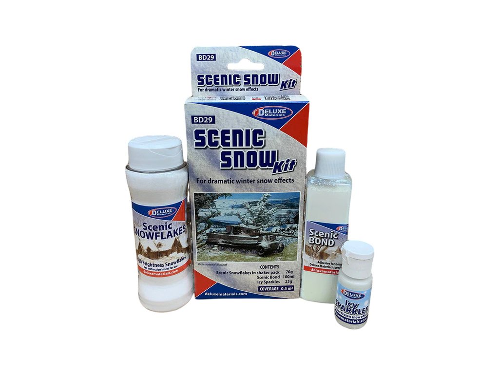 Scenic Snow (sada) je kompletní sada všeho, co budete potřebovat pro vytvoření zasněženého zimního prostředí pro modelovou železnici a dioramata.