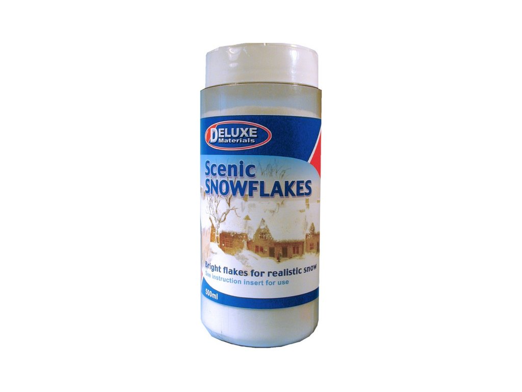Scénické sněhové vločky 500ml slouží k vytvoření realistického sněhového povrchu pro modelovou železnici a dioramata. Umožňuje snadno vytvářet skutečné sněhové efekty jako je napadaný sníh na budovách, stromech, vegetaci atd.