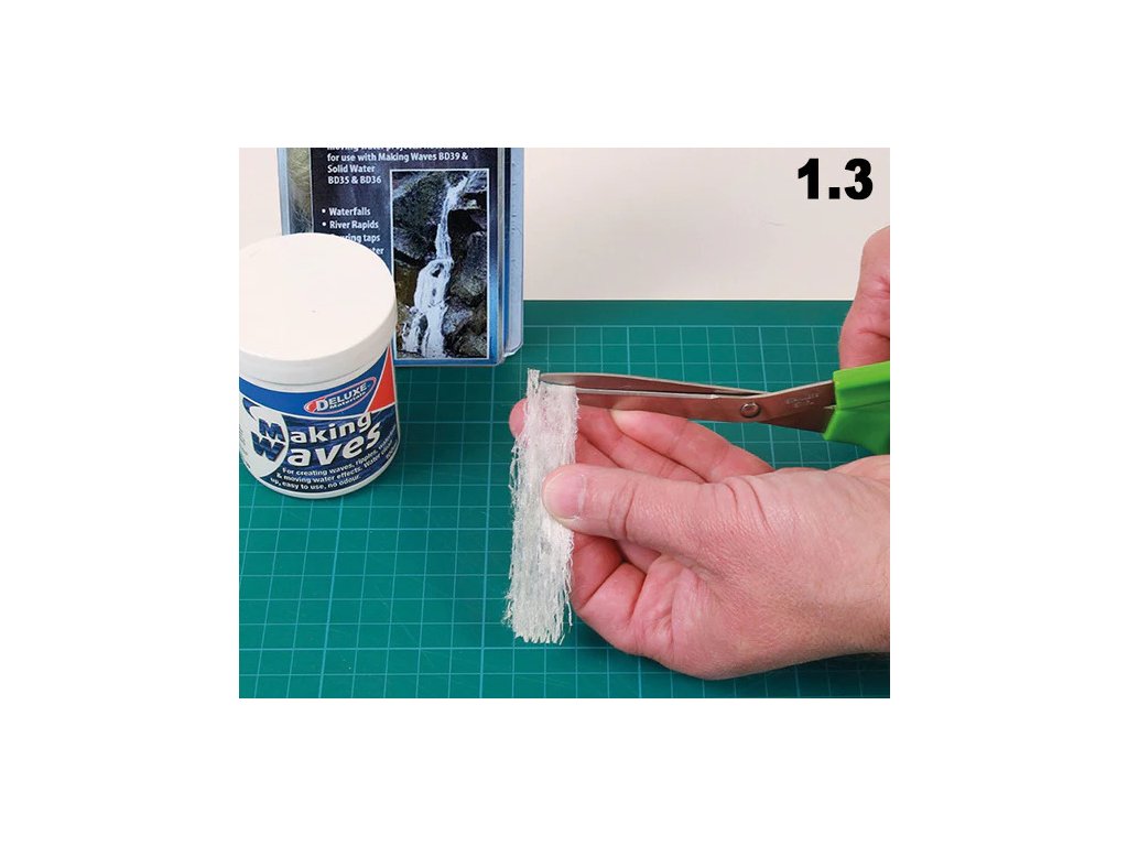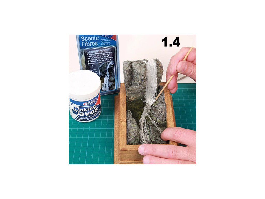 Scénické vlákna pro vytvoření základny pro realističtější vodopády, tekoucí vodu, tekoucí řeky a vodní kaskády pro modelovou železnici a dioramata. Použijte v kombinavi s Making Waves (položka DM-BD39) a Scénickou vodou (položka DM-DM-BD35).
