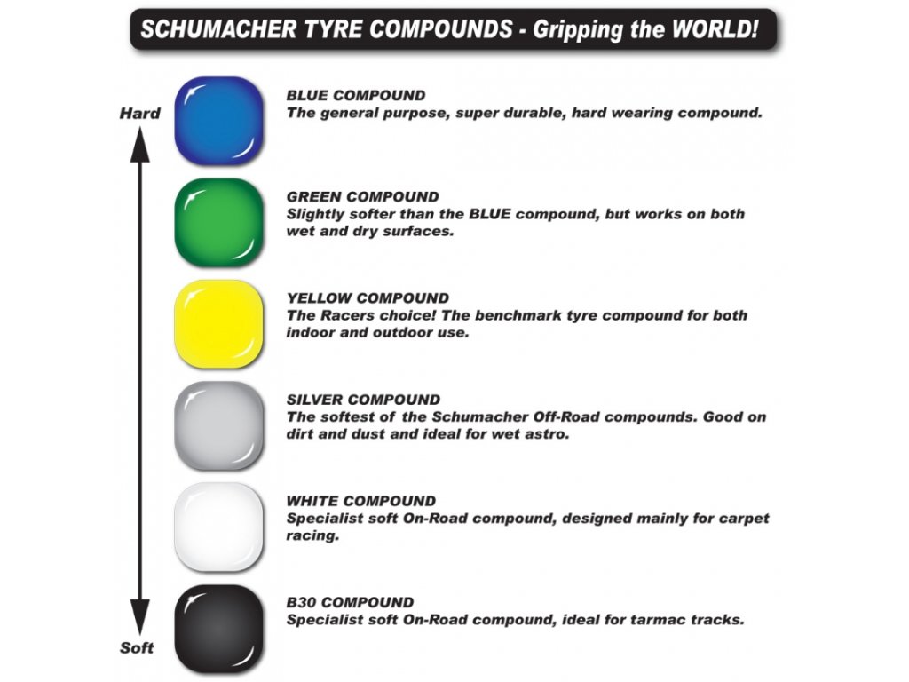 Schumacher 1/10 Fusion Slim - nalepená, žlutá směs, přední 2wd, 1 pár