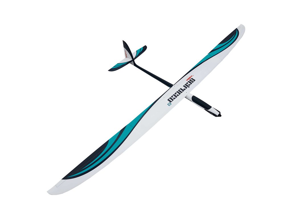 RC model větroně Scirocco S 3.75m ARF je vysoce výkonný model kategorie F5J. Moderní skořepinová konstrukce GRP/CFRP s vysokou pevností a nízkou hmotností. Elegantní hotové zbarvení, skvěle létá v termice, na svahu i akrobacii.