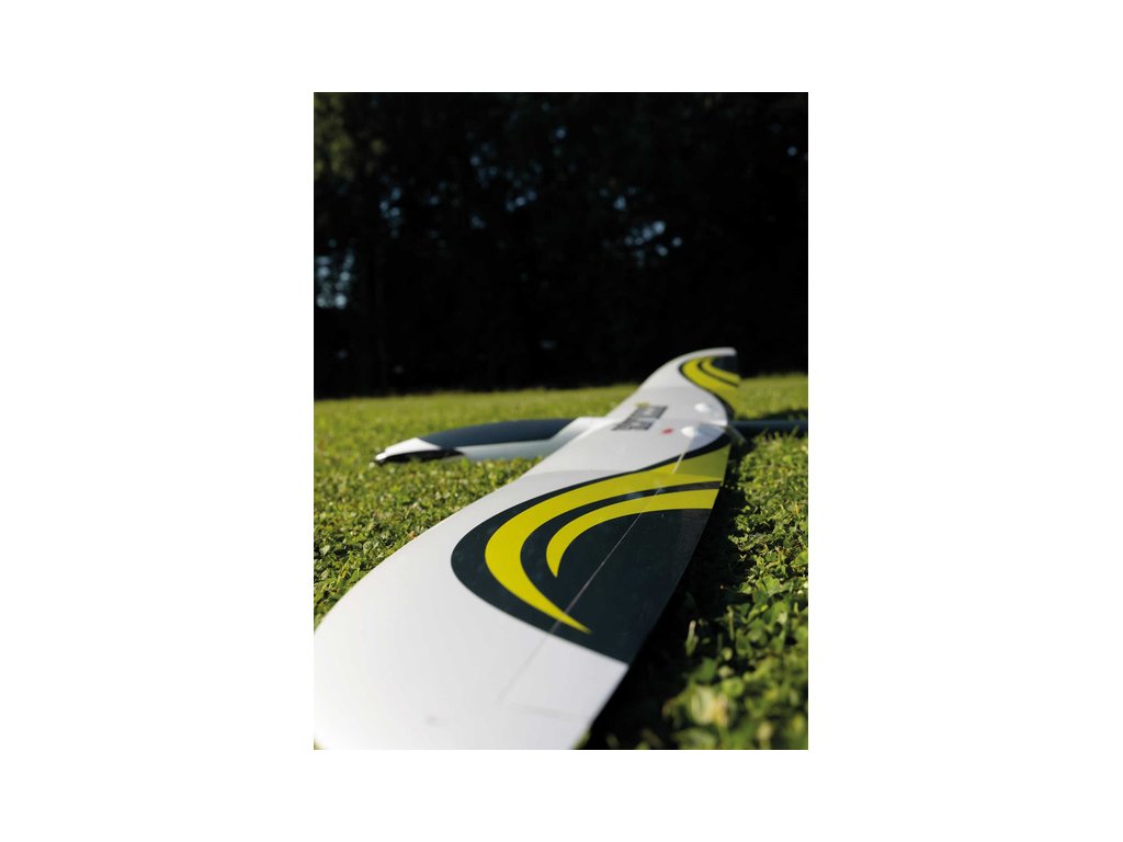 Plovoucí výškovka se nasouvá na uhlíkovou trubičku. Směrovka má páku kormidla uvnitř trupu, ocasní plochy jsou proto aerodynamicky naprosto čisté.