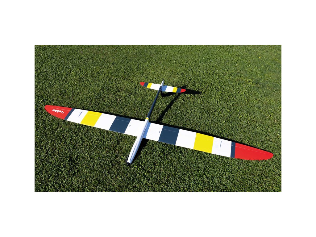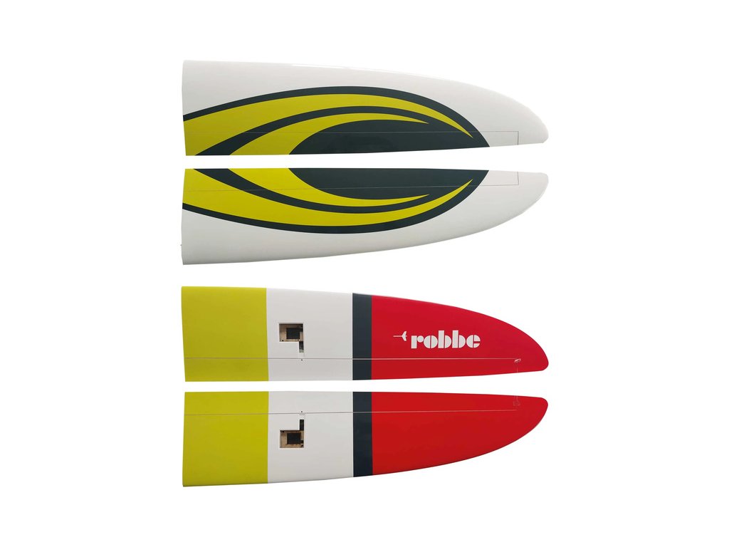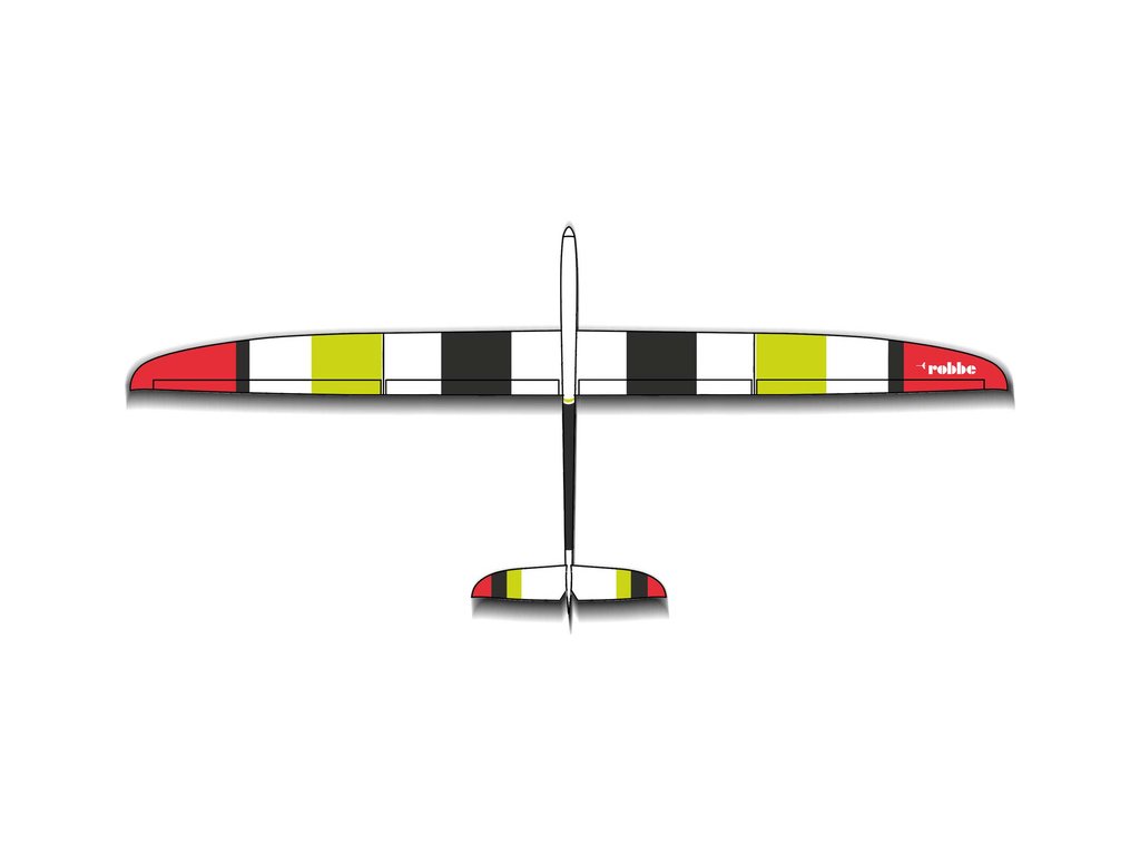 Obsahem balení je nabarvený laminátový trup, nabarvené křídlo s výškovkou, spojka výškovky, nainstalován je střídavý motor Robbe Ro-Power 4356-600, vrtulový kužel 45mm, sklopná vrtule 16x10", 4x serva FS 128 HV MG, 2x serva FS 335 MG a manuál DE, EN, FR.