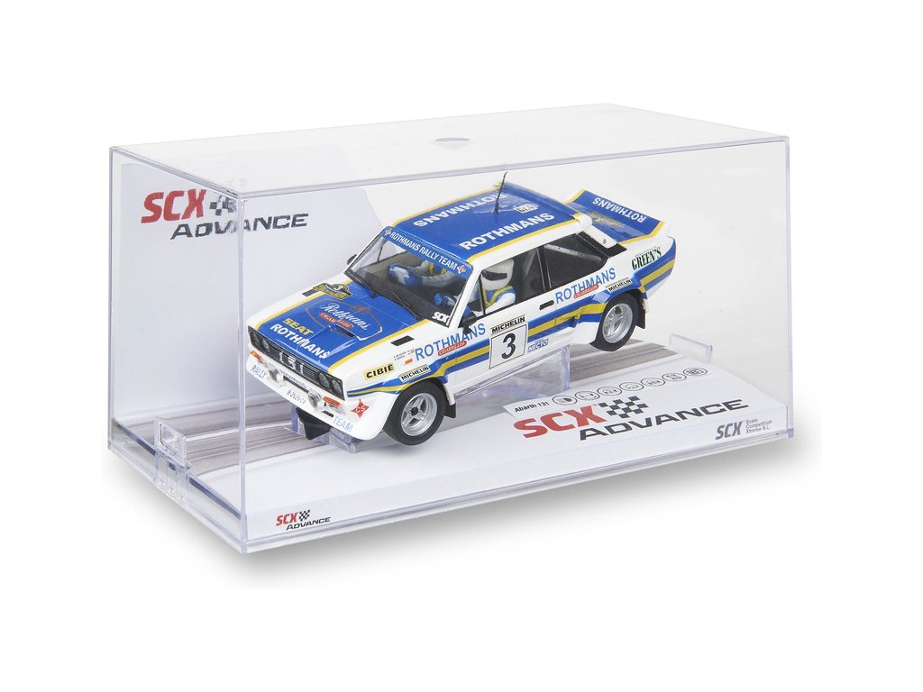 Dráhové autíčko SCX Advance Abarth 131 Talavera 82 v měřítku 1:32, verze 2.0, pro digitální autodráhy SCX Advance. Autíčko je vybaveno LED osvětlením. Na podvozku se nachází přepínač digital / analog - autíčko lze tedy používat na digitální autodráze SCX Advance i na analogové autodráze SCX Original.