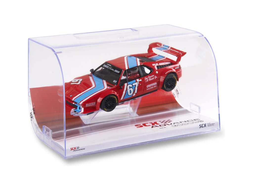 Dráhové autíčko SCX Advance BMW M1 Crevier Racing v měřítku 1:32, verze 2.0, pro digitální autodráhy SCX Advance. Autíčko je vybaveno LED osvětlením. Na podvozku se nachází přepínač digital / analog - autíčko lze tedy používat na digitální autodráze SCX Advance i na analogové autodráze SCX Original.