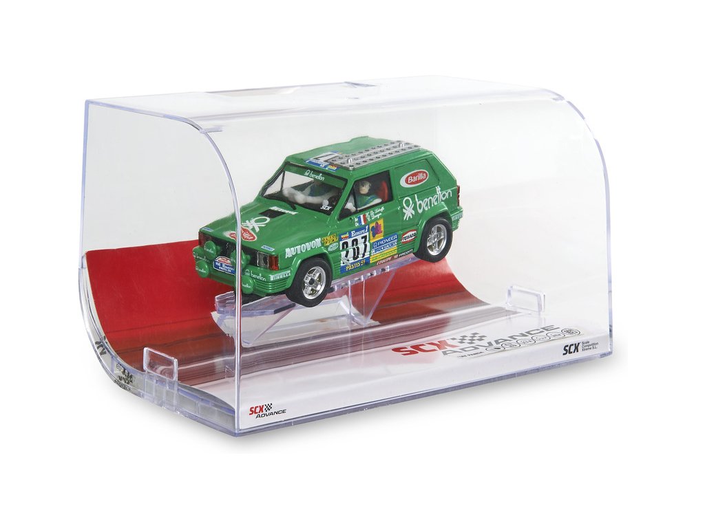 Dráhové autíčko SCX Advance Fiat Panda Dakar v měřítku 1:32, verze 2.0, pro digitální autodráhy SCX Advance. Autíčko je vybaveno LED osvětlením. Na podvozku se nachází přepínač digital / analog - autíčko lze tedy používat na digitální autodráze SCX Advance i na analogové autodráze SCX Original.
