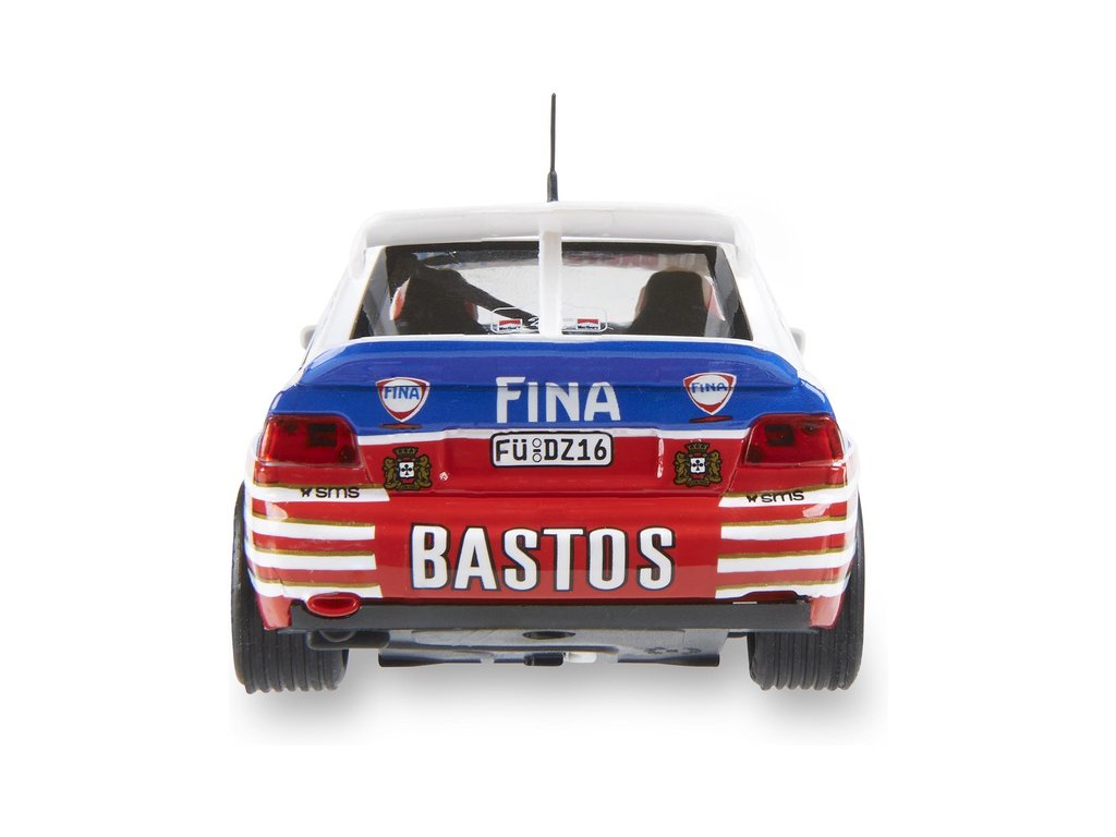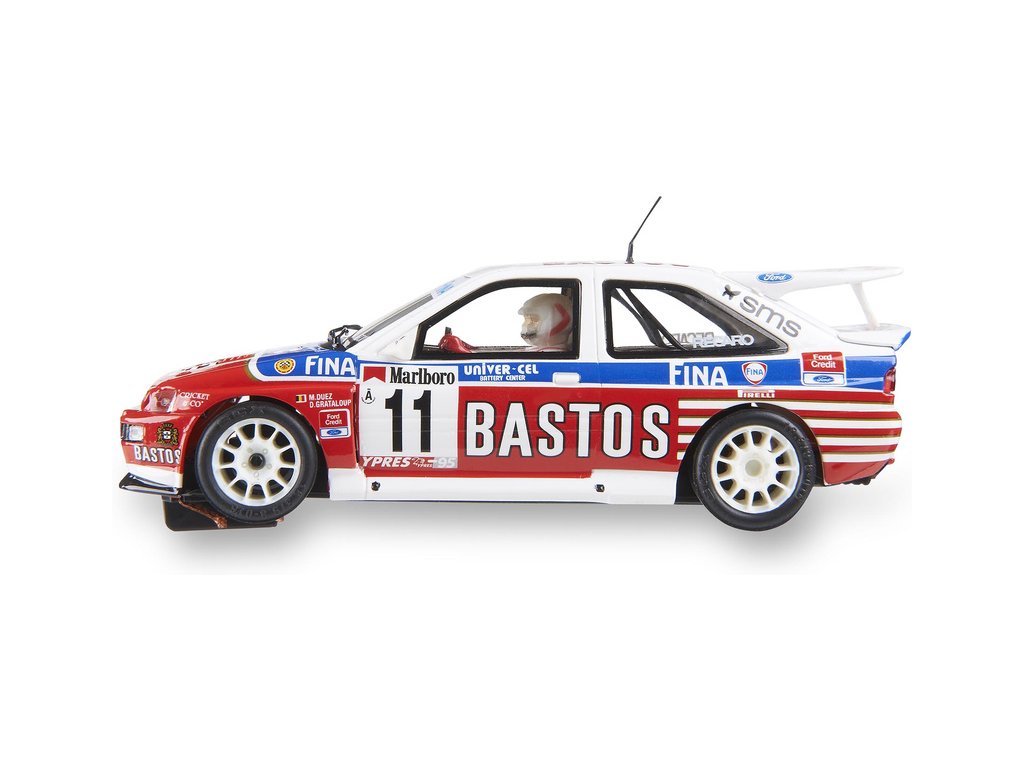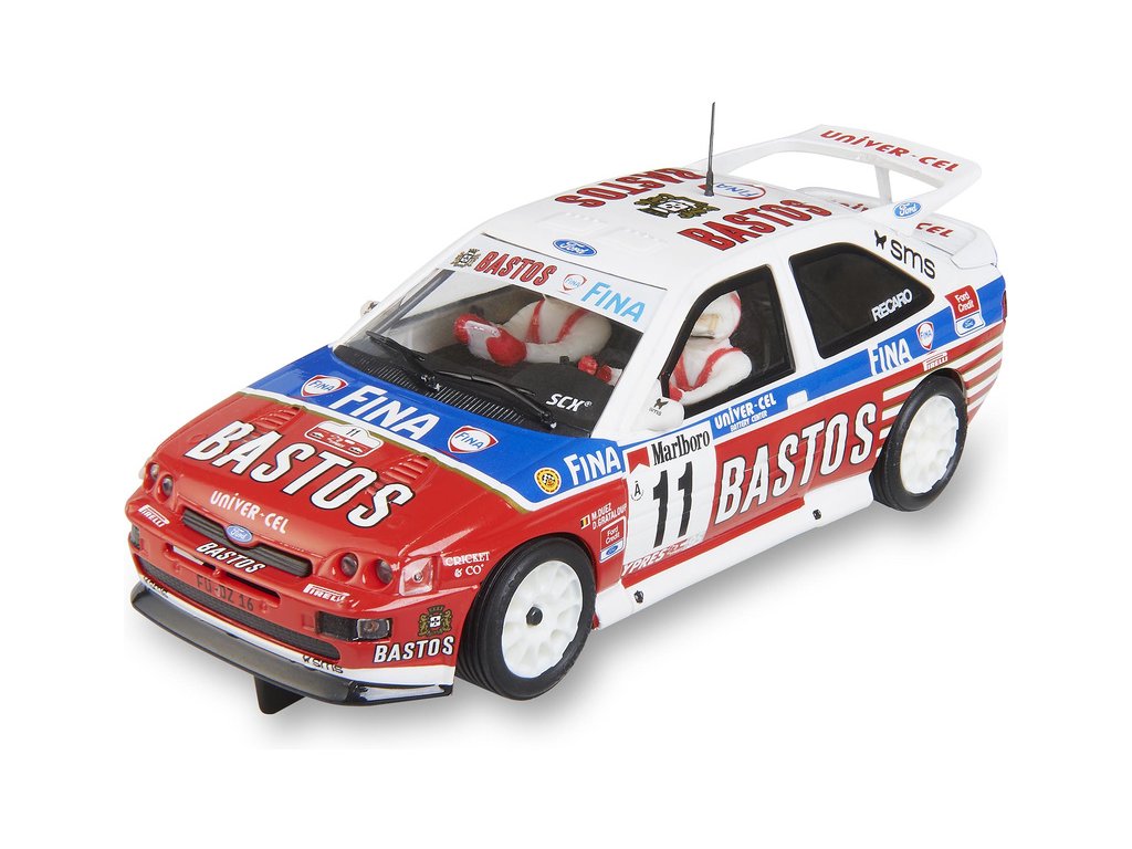 Dráhové autíčkoSCX Advance Ford Escort Cosworth Ypres 95 v měřítku 1:32, s osvětlením pro digitální autodráhy SCX Advance. Verze 2.0.