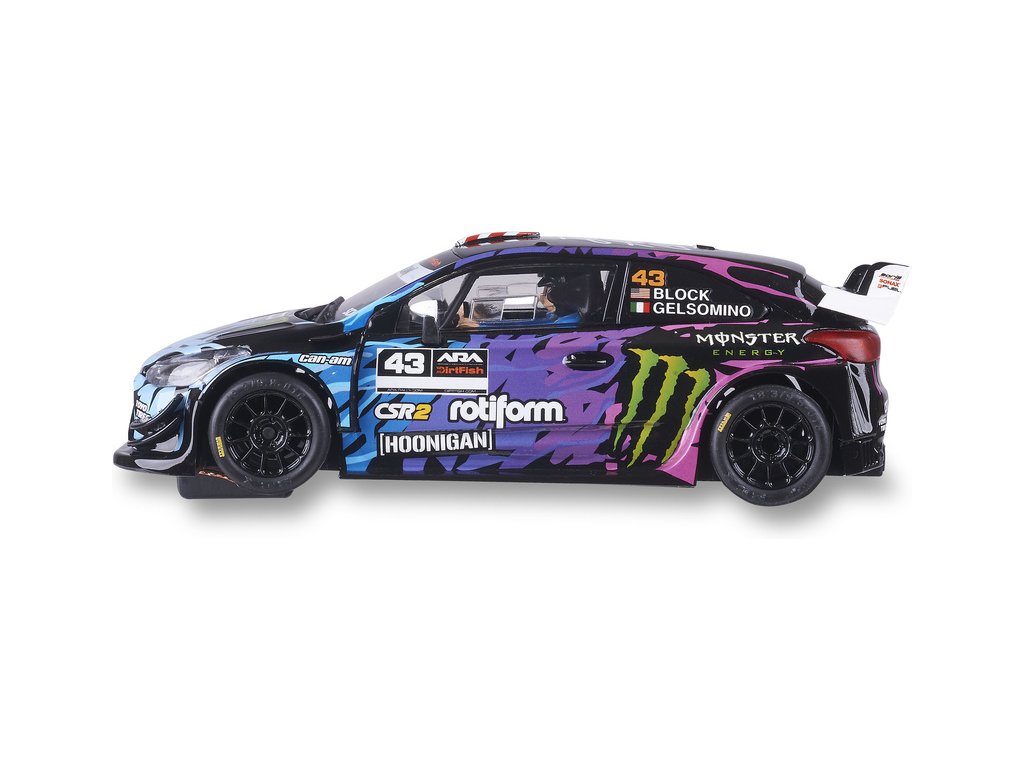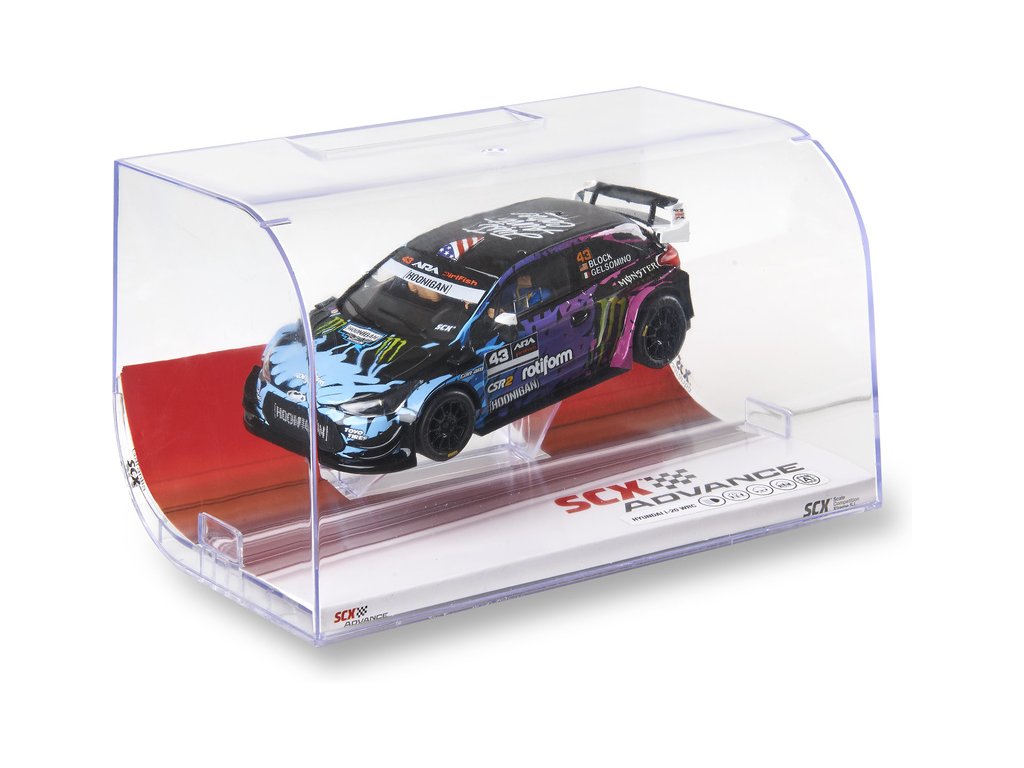 Dráhové autíčko SCX Advance Hyundai i-20 WRC Block v měřítku 1:32, verze 2.0, pro digitální autodráhy SCX Advance. Autíčko je vybaveno LED osvětlením. Na podvozku se nachází přepínač digital / analog - autíčko lze tedy používat na digitální autodráze SCX Advance i na analogové autodráze SCX Original.