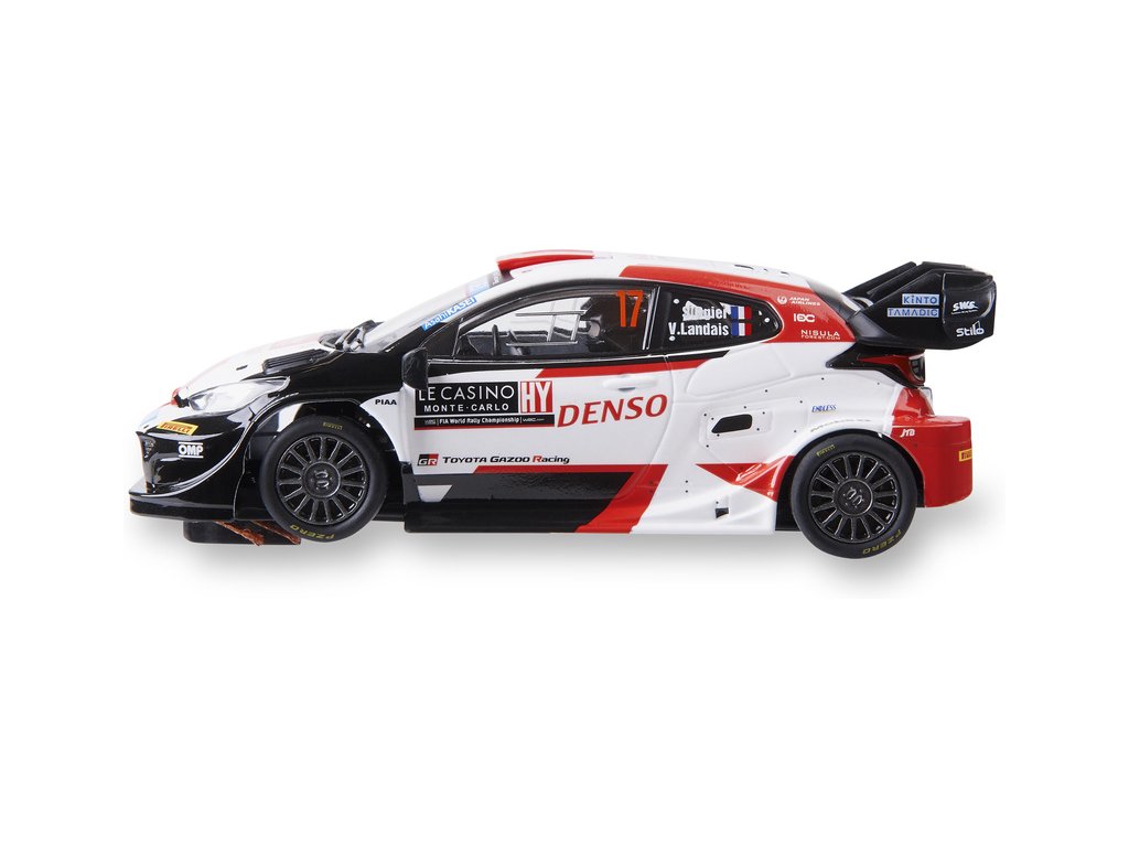 Dráhové autíčko SCX Advance Toyota Yaris WRC Montecarlo v měřítku 1:32, verze 2.0, pro digitální autodráhy SCX Advance. Autíčko je vybaveno LED osvětlením. Na podvozku se nachází přepínač digital / analog - autíčko lze tedy používat na digitální autodráze SCX Advance i na analogové autodráze SCX Original. Autíčko má náhon 4x4.