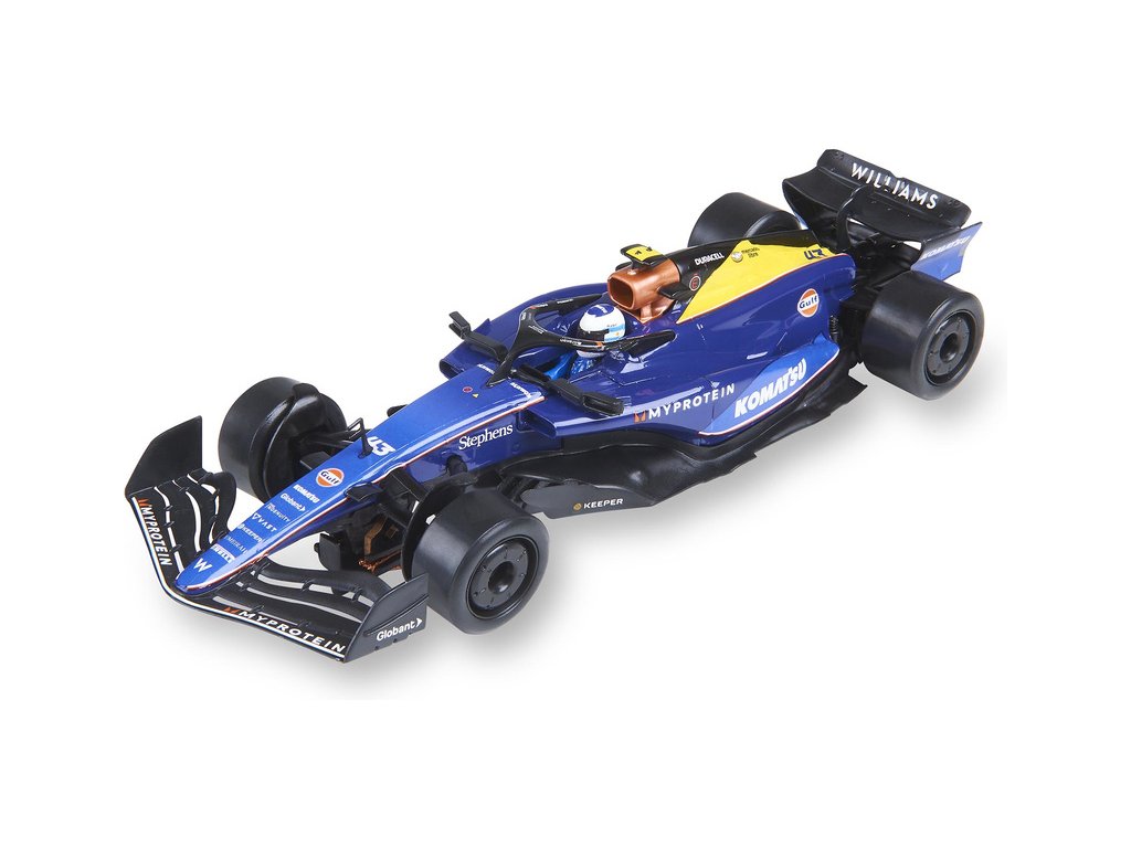 Dráhové autíčko SCX Advance Williams Formula 1 Colapinto 24 v měřítku 1:32, pro digitální autodráhy SCX Advance. Verze 2.0. Zatáčení předních kol.