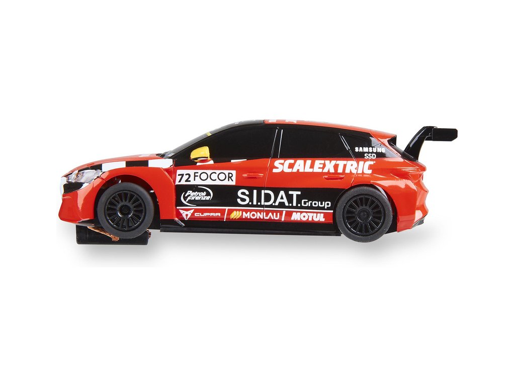 Dráhové autíčko SCX Compact Cupra León Competición Girolami v měřítku 1:43, pro autodráhy SCX Compact.