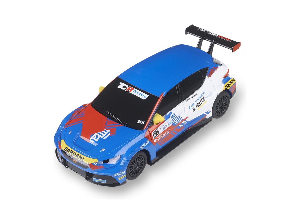 Dráhové autíčko SCX Compact Cupra Leon Competition Bardahl v měřítku 1:43, pro autodráhy SCX Compact. Autíčko je vybaveno LED světly.