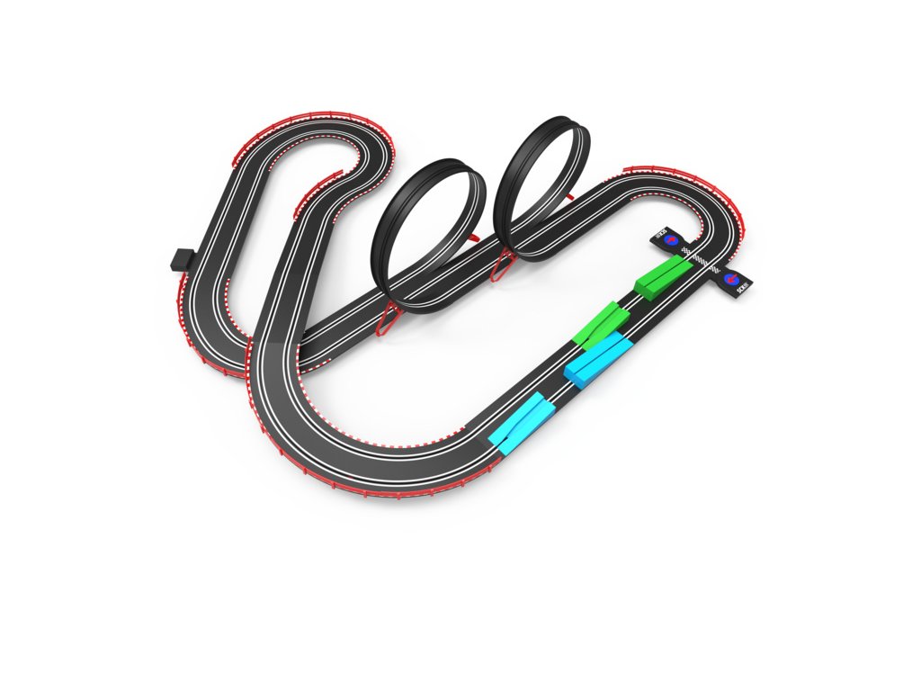 Elektrická autodráha je vybavena díly na stavbu dvou loopingů, každý pro jednu dráhu. Před začátkem loopingu je nutné nabrat rychlost, aby autíčko bezpečně projelo loopingem i vzhůru nohama.
