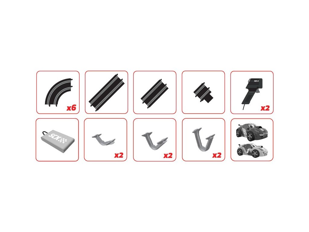 Autodráhy SCX Compact v měřítku 1:43 jsou cenově dostupné a díky menší velikosti, autodráhu snadno rozložíte i v dětském pokoji. Dětem je také přizpůsobena ergonomie ovladačů, které přesně padnou do ruky a můžete si užívat nekončící závody. Při menších rozměrech si dětská autodráha zachovává výborné zpracování detailů.