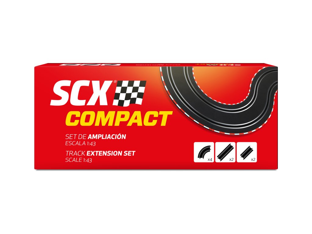 SCX Compact - Sada rozšíření trati. Traťové díly pro rozšíření analogové autodráhy SCX Compact. Balení obsahuje 4 x zatáčka STD 90º, 2x rovinka 342mm, 2 x rovinka 228mm.
