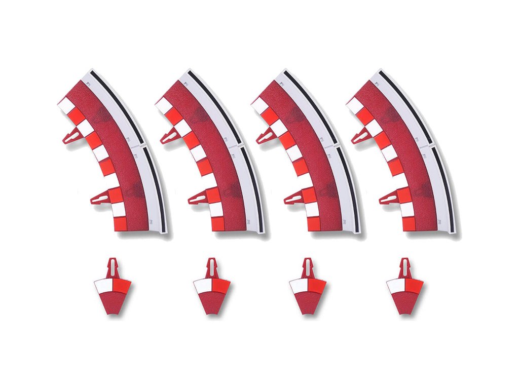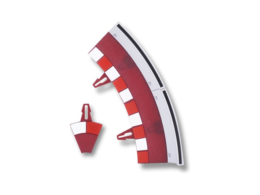 Krajnice s mantinelem pro vnitřní oblouk (zatáčku) autodráhy SCX 1:32. Balení obsahuje 4 kompletní sady.