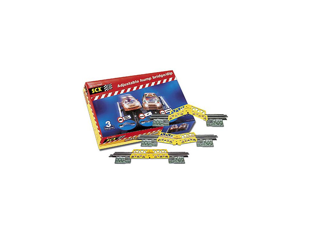 Stavitelný most se třemi polohami pro klasické autodráhy SCX 1:32 se starším typem dílů, nebo pro zapojení do konverzního traťového dílu.