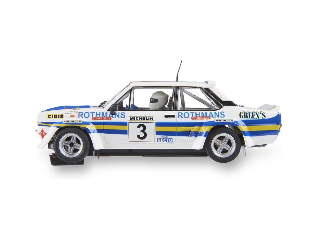 Dráhové autíčko SCX Original Abarth 131 - Talavera 1982 v měřítku 1:32, s osvětlením, pro analogové autodráhy SCX Original. Autíčko je vhodné také pro analogové autodráhy Carrera 1:32 a Ninco 1:32. Pokud doplníte SCX Advance Konverzní sada typ B - krátký SCXE10406X200, můžete auto použít pro autodráhu Advance.