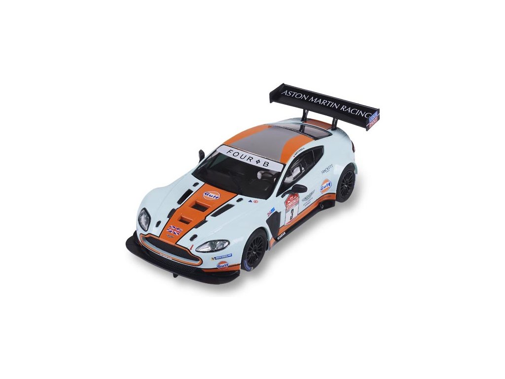 Dráhové autíčko SCX Original Aston Martin Vantage GT3 Gulf v měřítku 1:32, pro analogové autodráhy SCX Original. Autíčko je vybaveno LED světly.