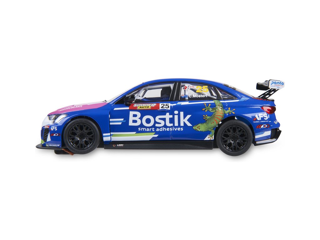 Dráhové autíčko SCX Original Audi RS3 LMS TCR Bostik v měřítku 1:32, pro analogové autodráhy SCX Original. Autíčko je vybaveno LED světly.