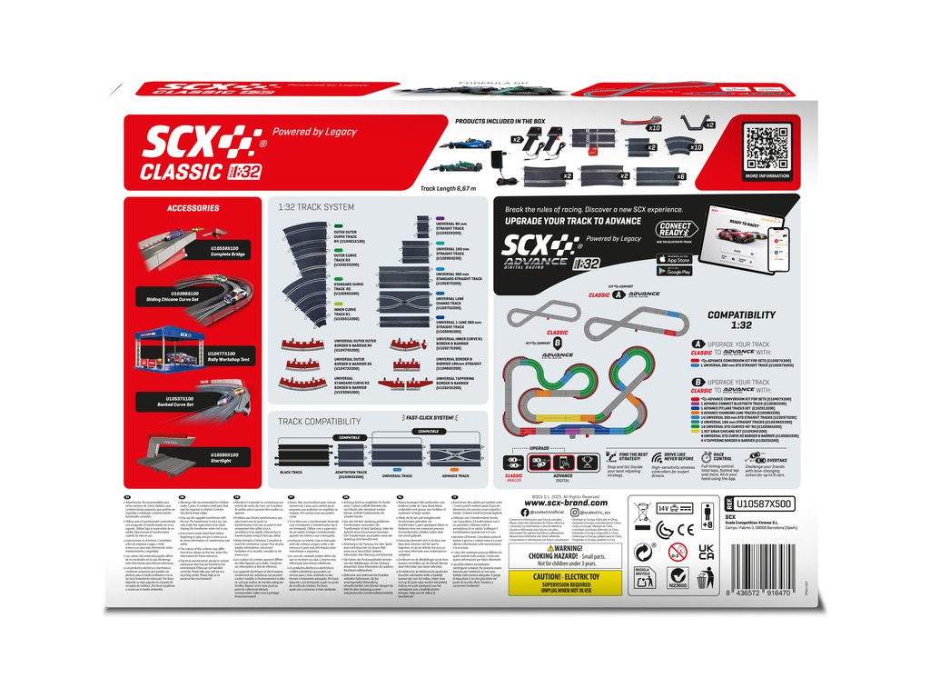 Autodráhy SCX Original jsou v klasickém měřítku 1:32. Toto měřítko je ideální velikost pro pravé a napínavé závody při kterých si plně užijete a osvojíte dynamiku autíček. Autodráhy SCX 1:32 mají shodné traťové díly a lze autodráhu vylepšovat a rozšiřovat. Navíc, pokud Vás závodění bude bavit, lze autodráhy SCX Original následně upgradovat pomocí digitalizačních setů na SCX Advance a užít si všechny výhody a rozšíření digitální autodráhy.