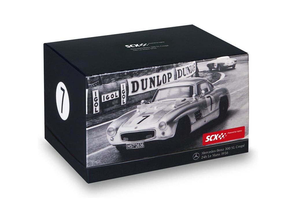 Dráhové autíčko SCX Original Mercedes-Benz 300 SL Coupé - 24h Le Mans v měřítku 1:32, s osvětlením, pro analogové autodráhy SCX Original. Autíčko je vhodné také pro analogové autodráhy Carrera 1:32 a Ninco 1:32. Pokud doplníte SCX Advance Konverzní sada typ B - krátký SCXE10406X200, můžete auto použít pro autodráhu Advance.