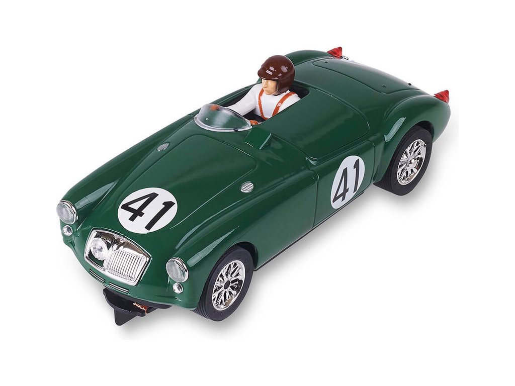 Dráhové autíčko SCX Original MG A 1955 Le Mans v měřítku 1:32, s osvětlením, pro analogové autodráhy SCX Original. Autíčko je vhodné také pro analogové autodráhy Carrera 1:32 a Ninco 1:32. Pokud doplníte SCX Advance Konverzní sada typ B - krátký SCXE10406X200, můžete auto použít pro autodráhu Advance.