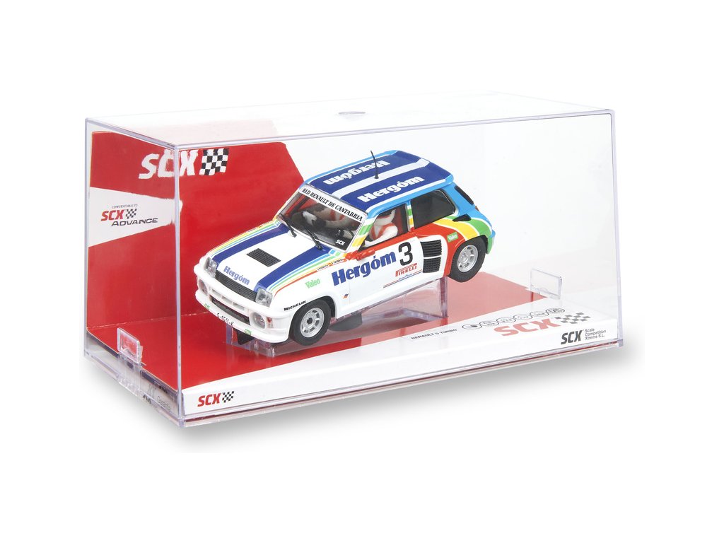 Dráhové autíčko SCX Original Renault 5 Turbo Puras v měřítku 1:32, s osvětlením, pro analogové autodráhy SCX Original. Pokud doplníte SCX Advance Konverzní sada typ A - dlouhý SCXE10405X200, můžete auto použít pro autodráhu Advance.
