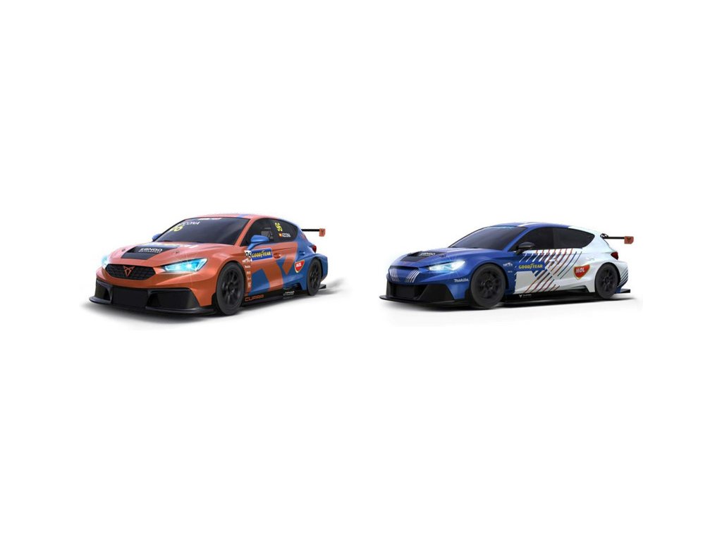 Dráhová autíčka Team Cupra Electric a Team Cupra Fuel.