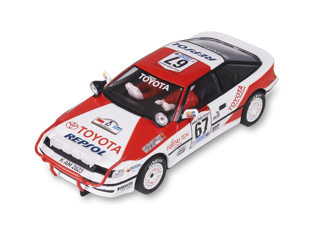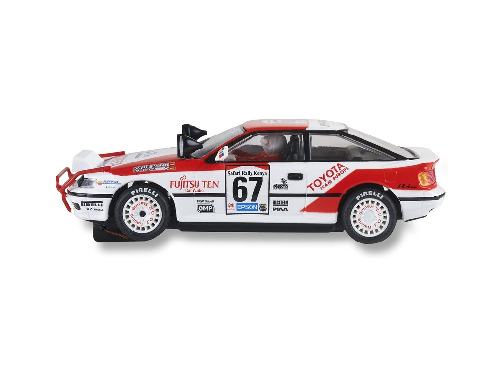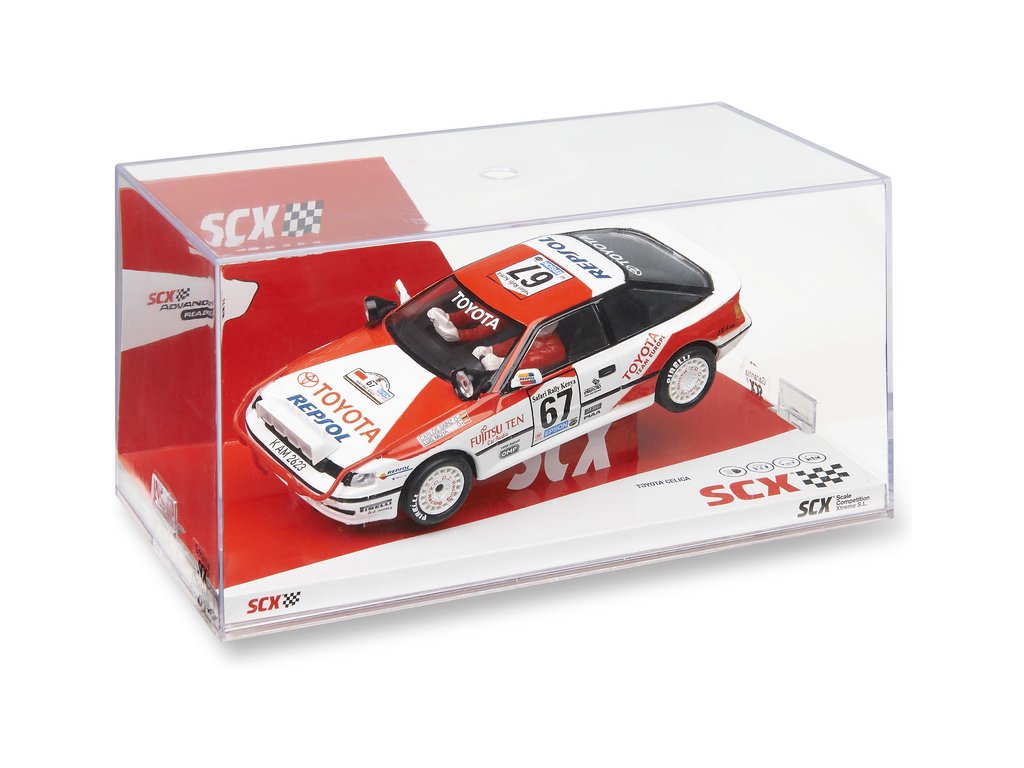 Dráhové autíčko SCX Original Toyota Celica Safari v měřítku 1:32, s osvětlením, pro analogové autodráhy SCX Original. Pokud doplníte SCX Advance Konverzní sada typ A - dlouhý SCXE10405X200, můžete auto použít pro autodráhu Advance.