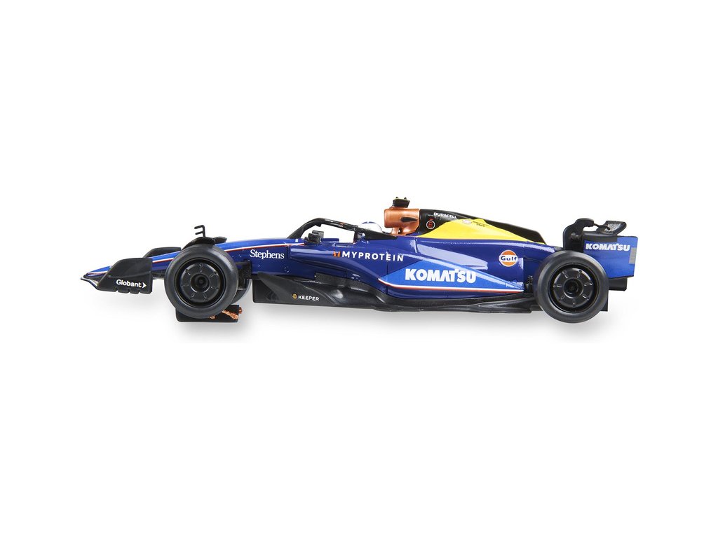 Dráhové autíčko SCX Original Williams Formula 1 - Colapinto 2024 v měřítku 1:32, pro analogové autodráhy SCX Original. Pokud doplníte SCX Advance Konverzní sada typ C SCXE10594X200, můžete auto použít pro autodráhu Advance.