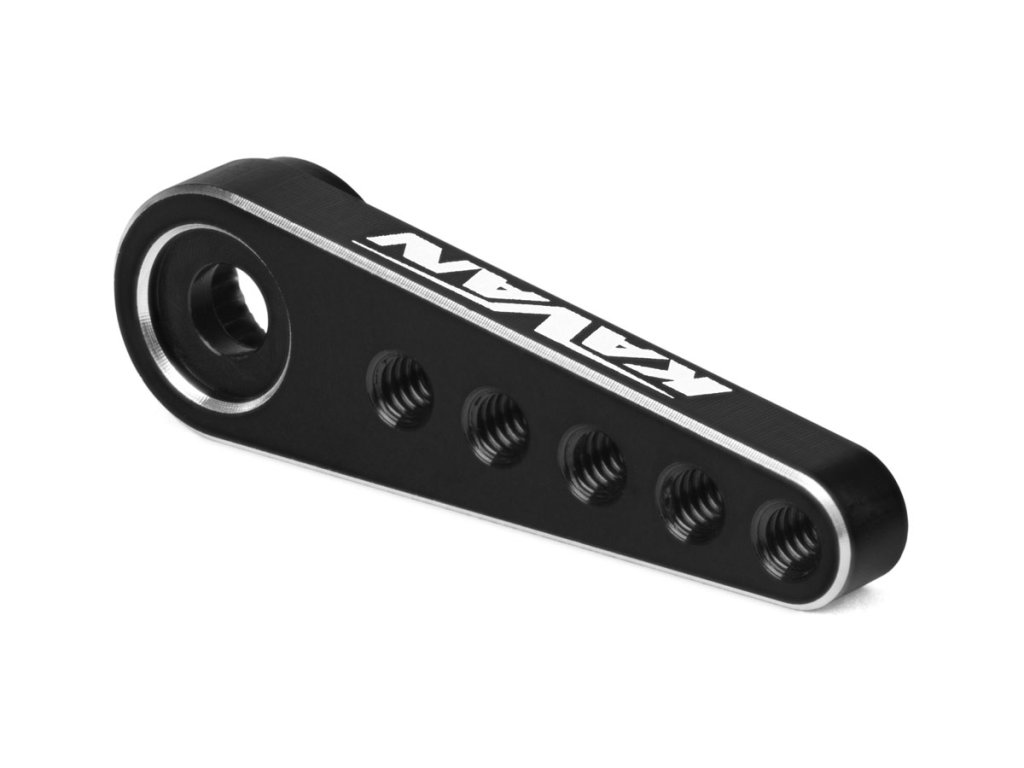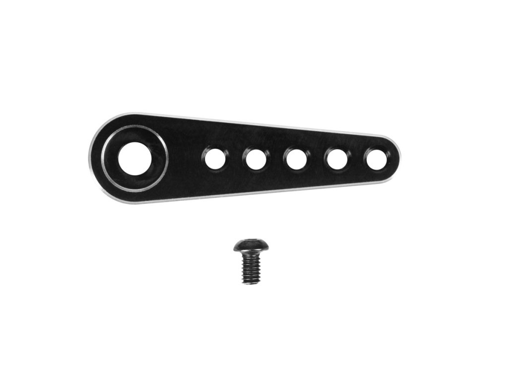 Profesionální servo páka pro serva s výstupním tisícihranem 25zubů s průměrem 4,9mm. Vyrobeno z hliníku se závity M2 pro použití kulových čepů. Vzdálenost otvorů od osy serva: 6,5mm; 9,8mm; 13,1mm; 16,4mm; 19,6mm.