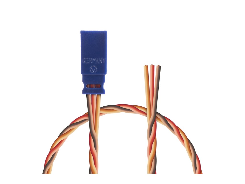 Kroucený velmi silný servokabel s konektorem (protikus) JR o délce 300 mm se silikonovou izolací, průřez vodičů 0,35 mm2. Vyrobeno v Německu.