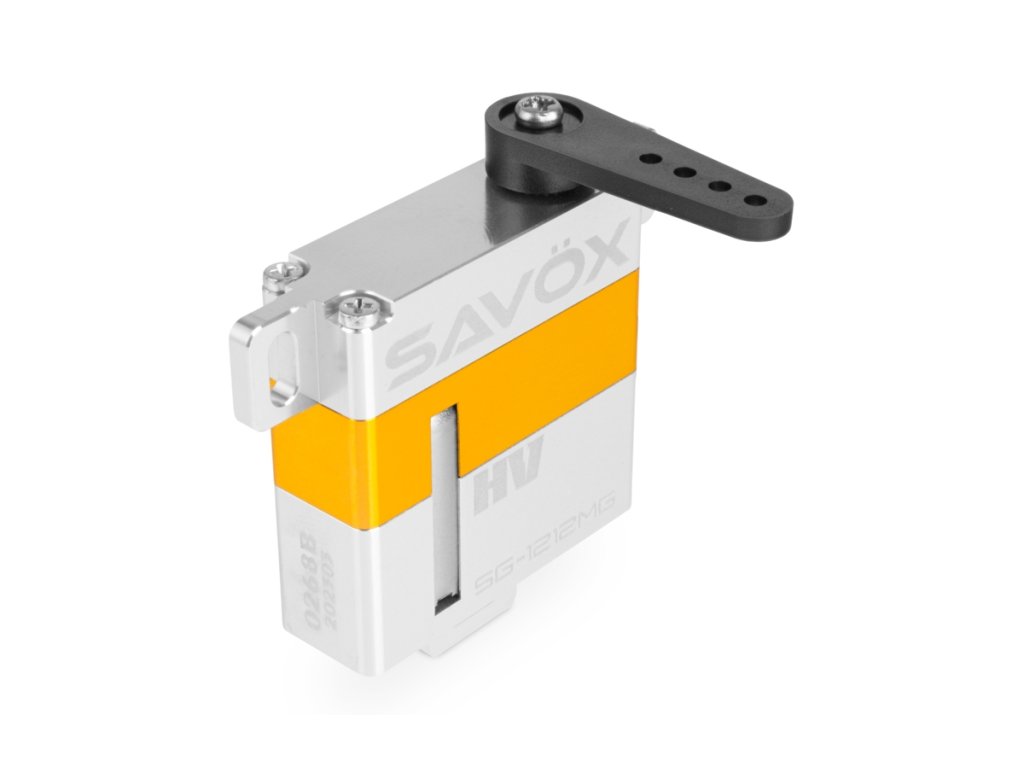 Jedná se o celohliníkové HiVolt servo Savox SG-1212MG s kovovými převody a upevňovacími patkami. Servo je speciálně navrženo pro F3K větroně a podobné. Díky svému jedinečnému designu pouzdra je určen k montáži do tenkých křídel.