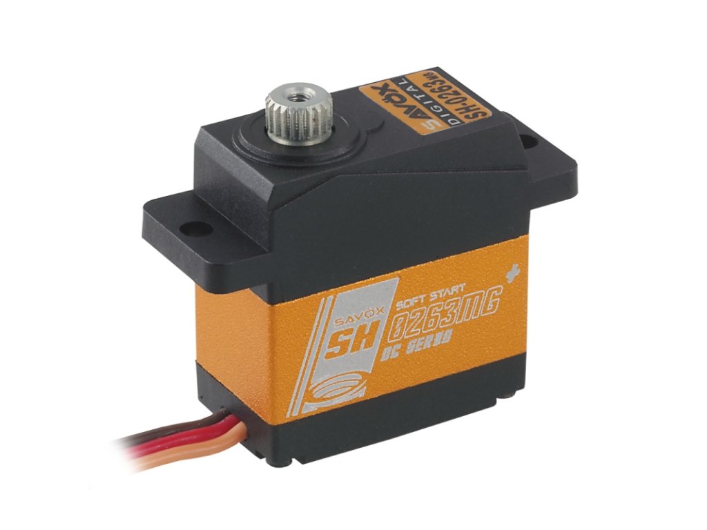 Micro digitální servo Savox SH-0263MG+ je velmi rychlé s kovovými převody a 2-krát uložené v kuličkových ložiskách.