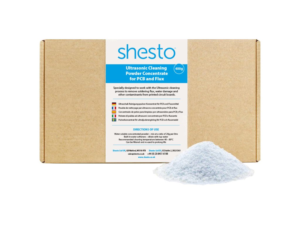 Speciálně navržený koncentrovaný prášek rozpustný ve vodě, pro ultrazvukové čištění k odstranění pájecího tavidla, oxidace a dalších nečistot z desek plošných spojů. Vytvoření až 20 l roztoku z 400 g koncentrátu. Pro prodloužení životnosti lze roztok filtrovat a znovu použít. Práškový koncentrát se oproti klasickým roztokům snáze skladuje.
