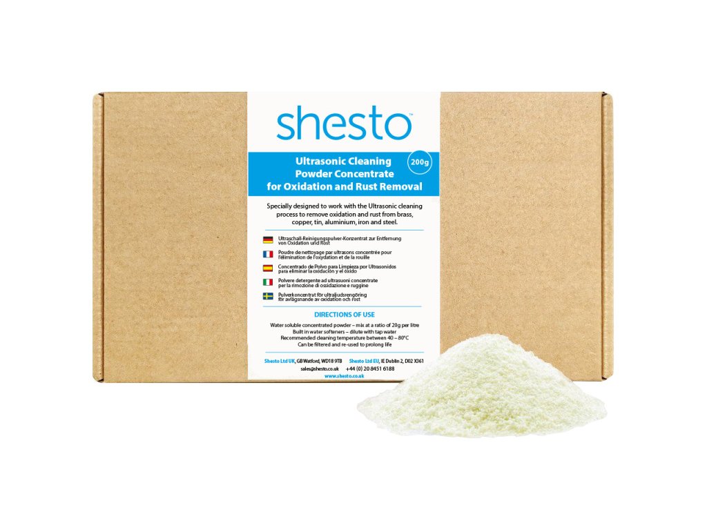 Speciálně navržený koncentrovaný prášek rozpustný ve vodě, pro ultrazvukové čištění k odstranění oxidace a rzi z mosazi, mědi, cínu, hliníku, železa a oceli. Vytvoření až 10 l roztoku z 200 g koncentrátu. Pro prodloužení životnosti lze roztok filtrovat a znovu použít. Práškový koncentrát se oproti klasickým roztokům snáze skladuje.